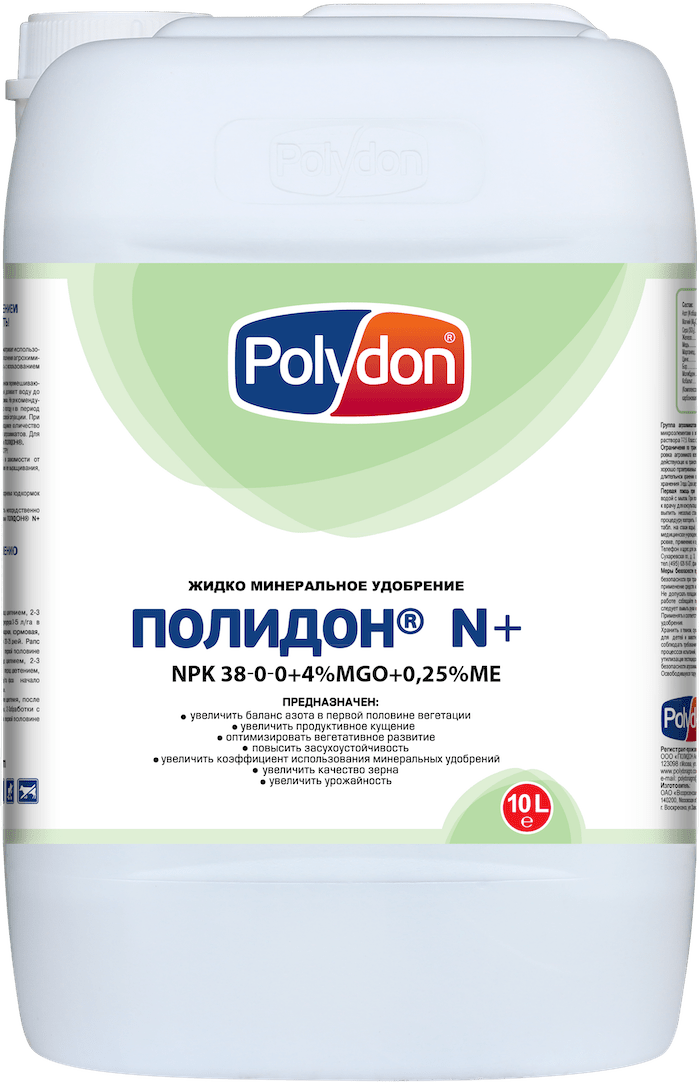 Полидон N+ 38⁃0⁃0+4%MgO+0,25%ME - Состав с высоким содержанием азота и микроэлементами в хелатной форме. Вносится совместно с пестицидами.