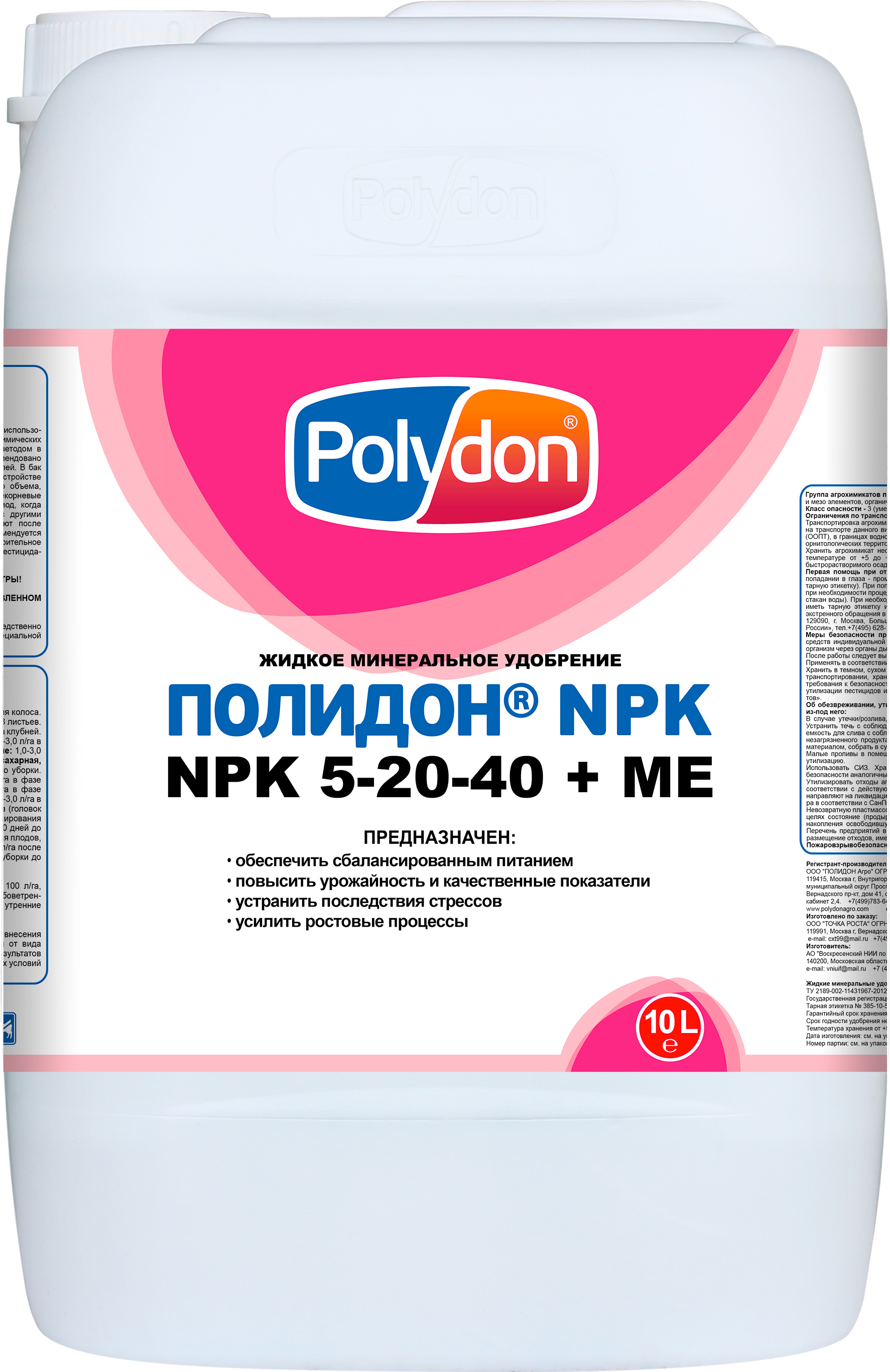 Полидон NPK 5-20-40+МЕ - Сбалансированный состав по азоту, фосфору и калию с микроэлементами в хелатной форме. Жидкий комплекс с повышенным содержанием фосфора и калия, предназначенный для стимуляции цветения, активного корнеобразования и полноценного созревания плодов. Идеально подходит для использования в критически важных фазах роста, когда растениям требуется усиленная поддержка для формирования урожая.